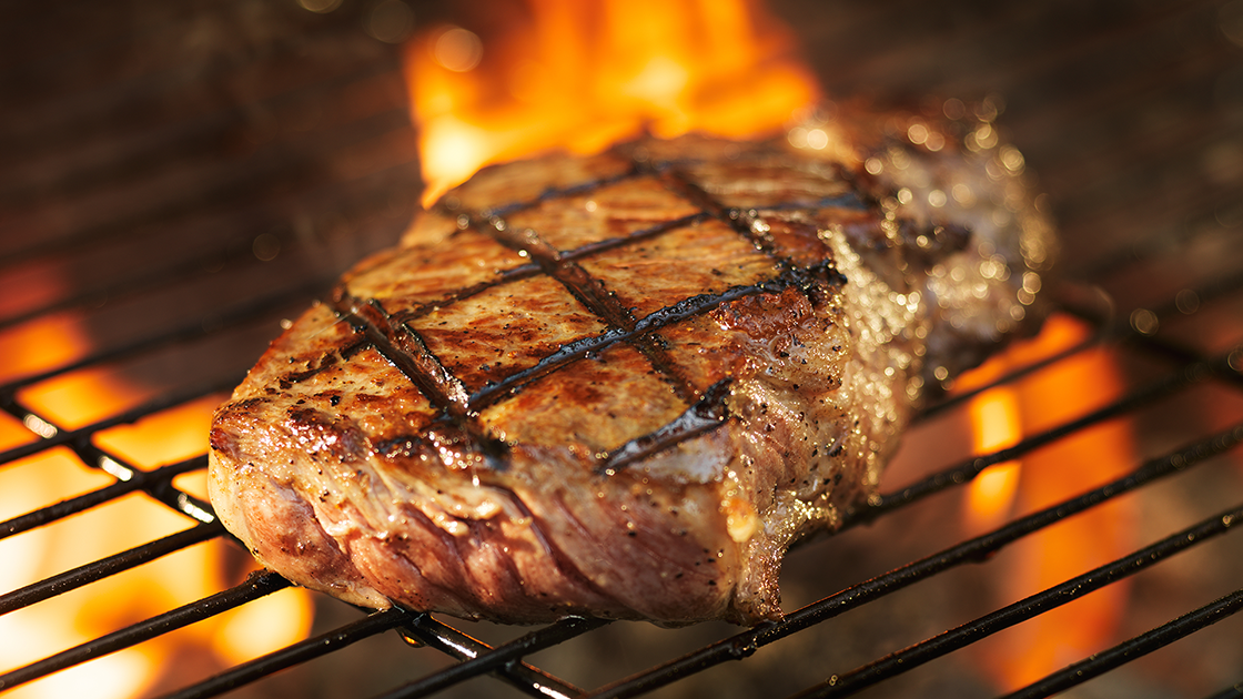 - Season the steak on both sides with salt and pepper. Grill the steak until medium-rare.