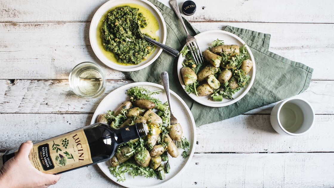 Ingredients for ramp, hazelnut, pecorino pesto: