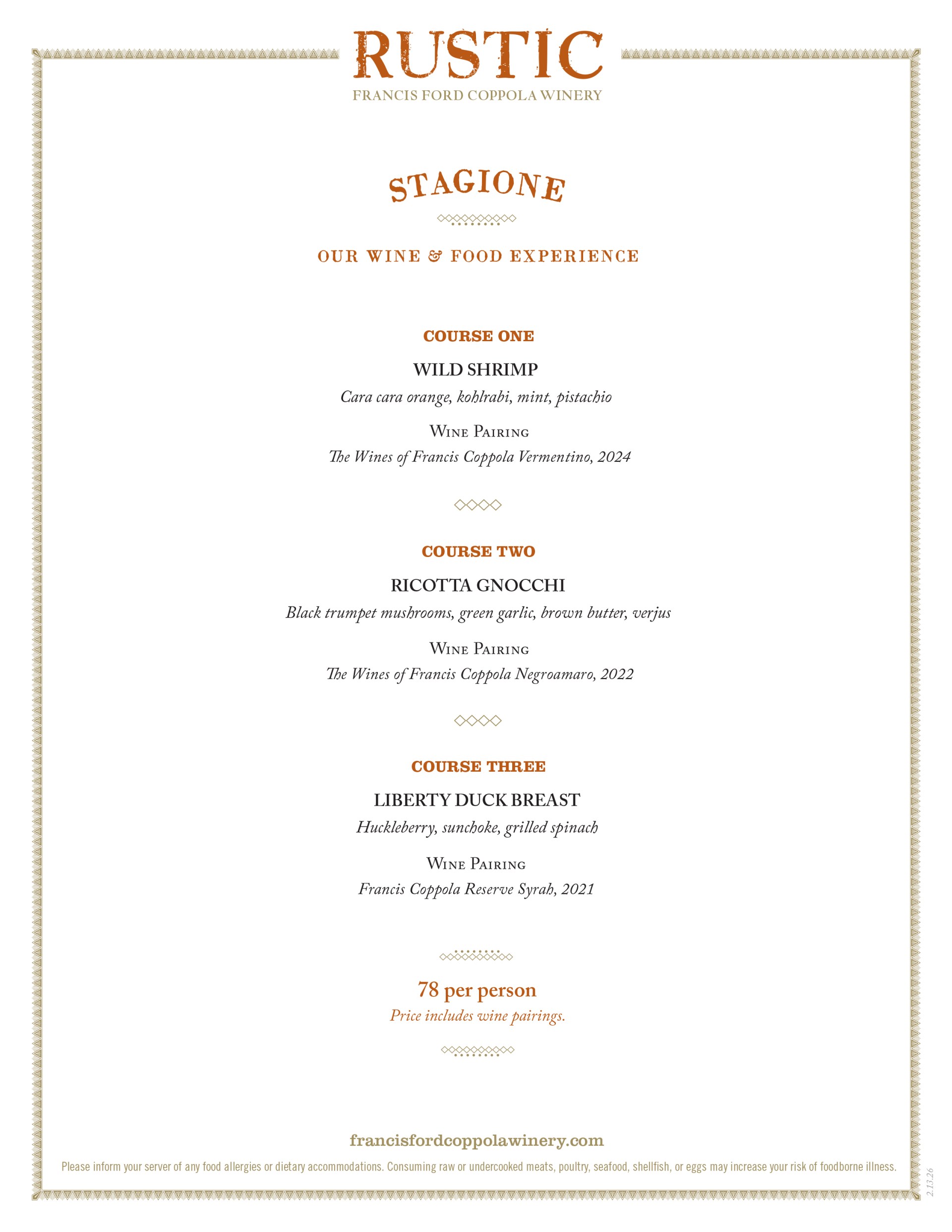 Your table is waiting. Book now to enjoy Rustic’s fresh, seasonal flavors with Coppola wines at the heart of every plate.