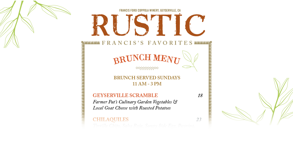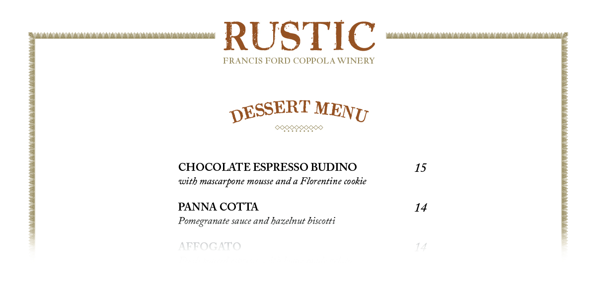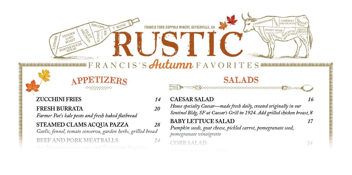 Featuring Francis Ford Coppola’s personal favorite dishes from around the world.